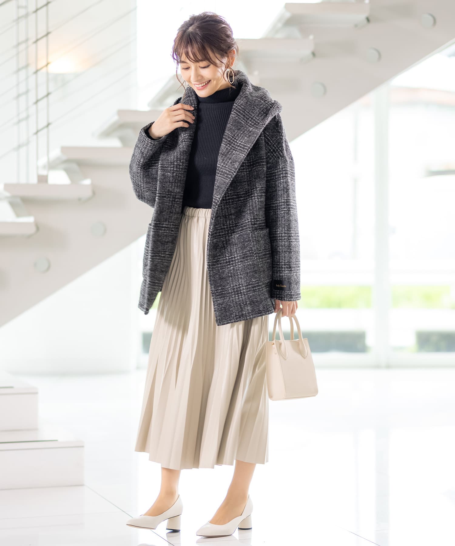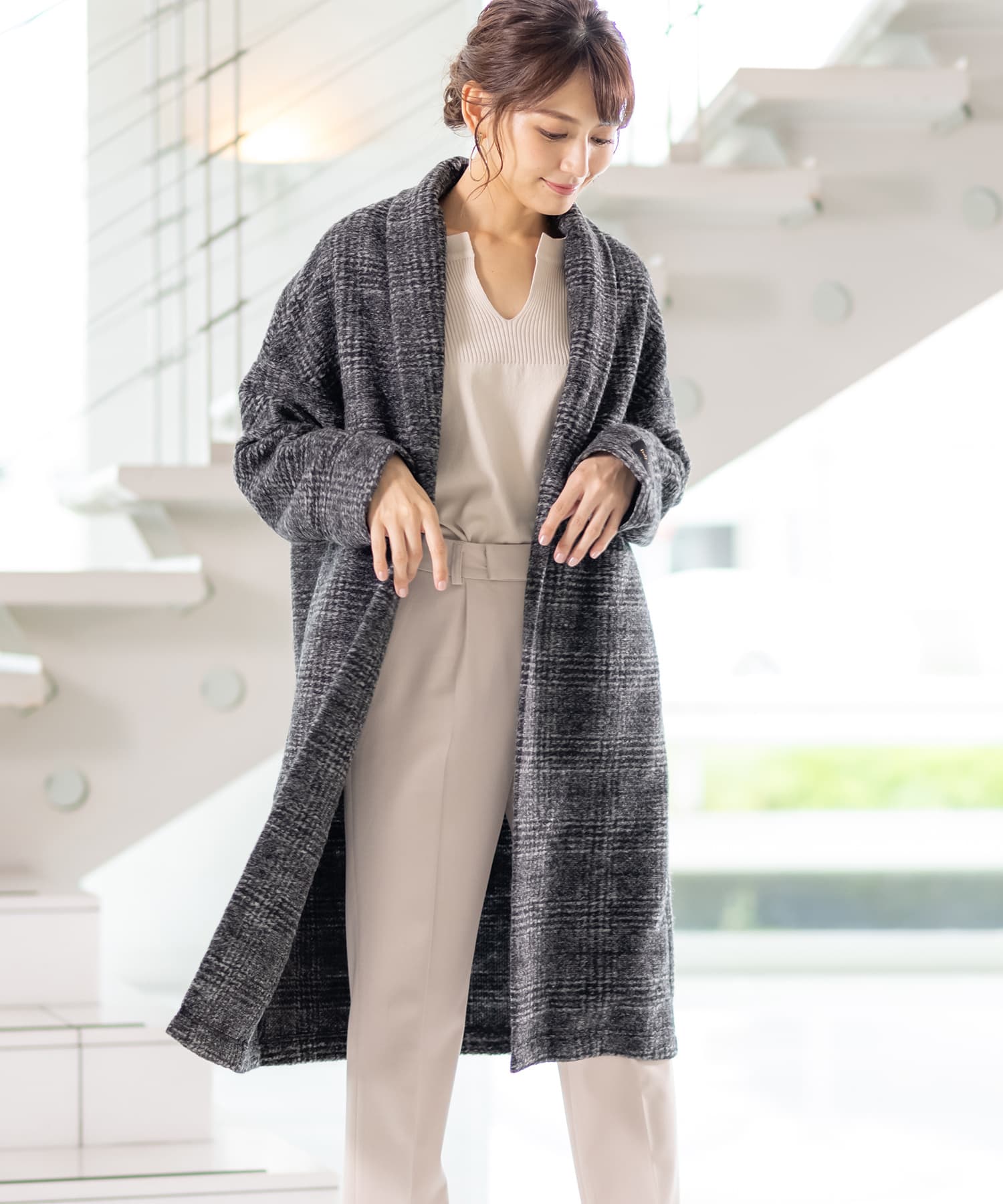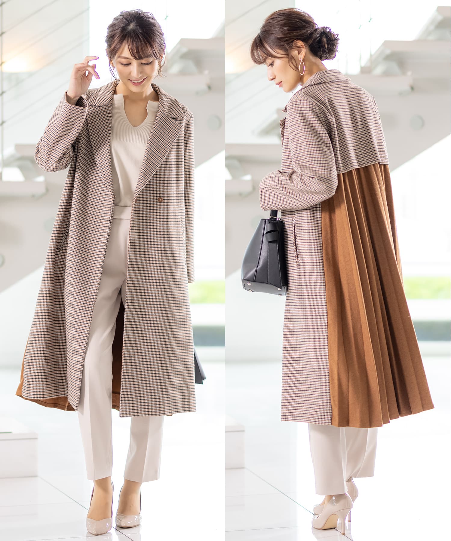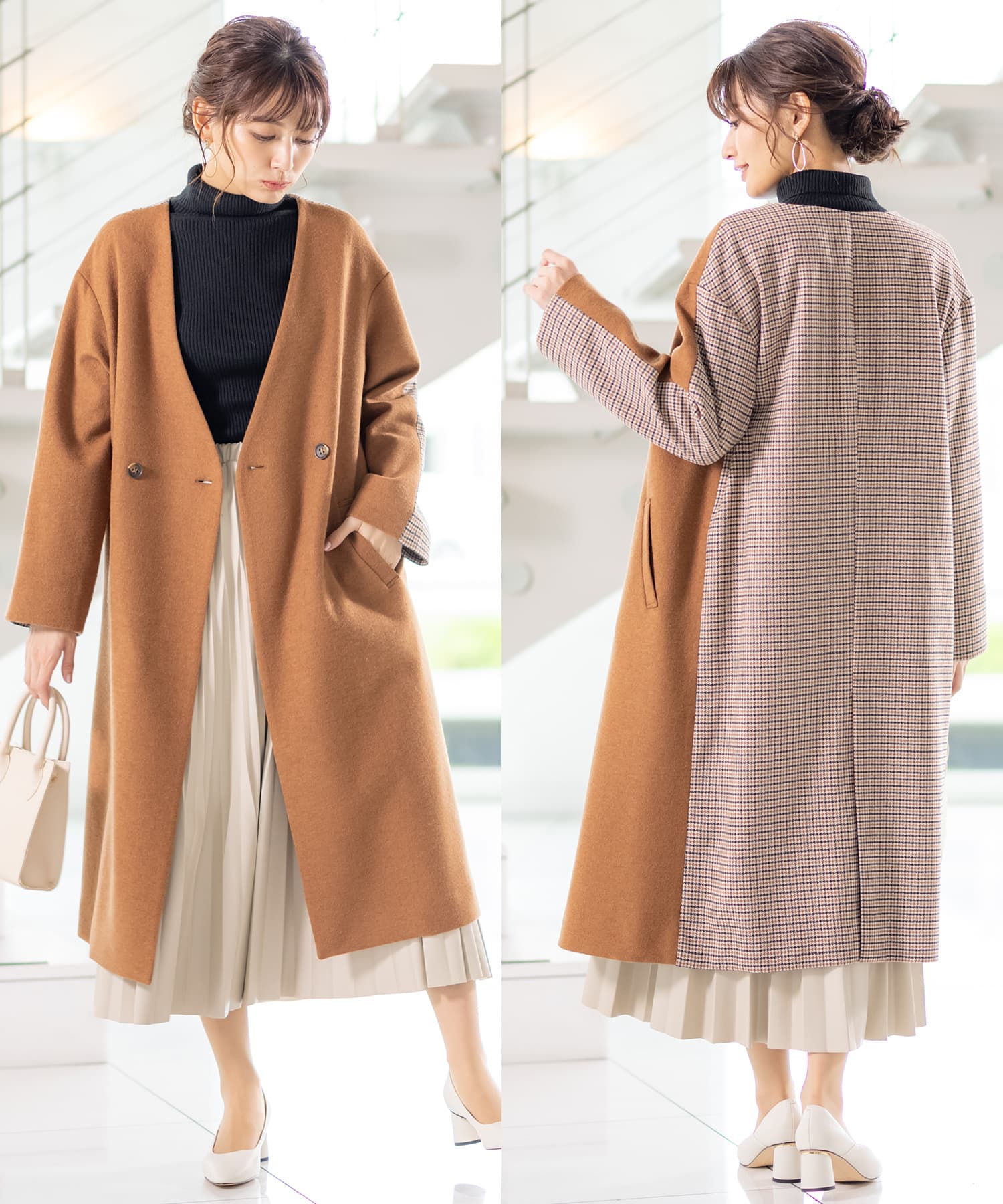 ウール×チェック切り替えコート