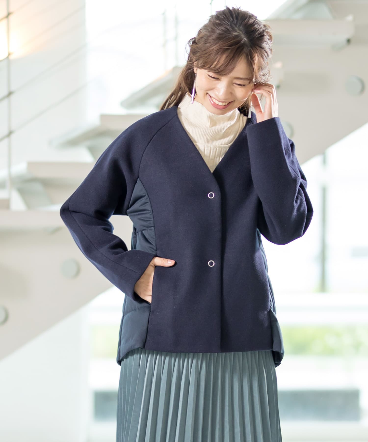 キルティング切り替えコート